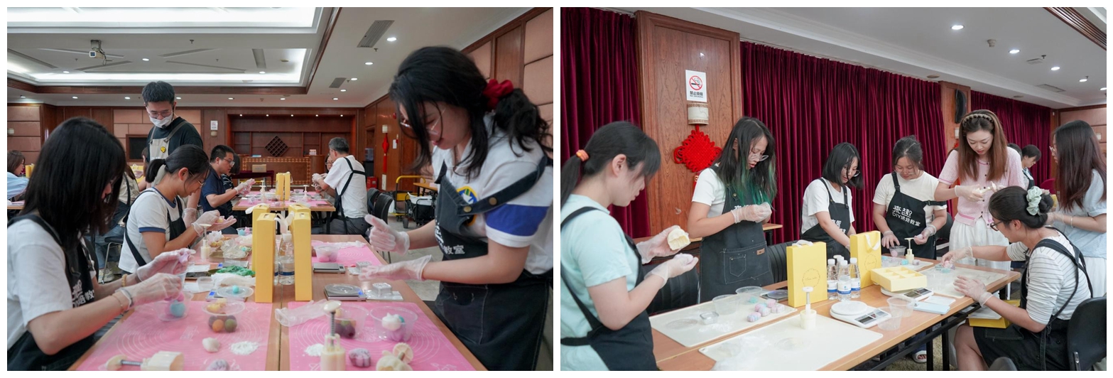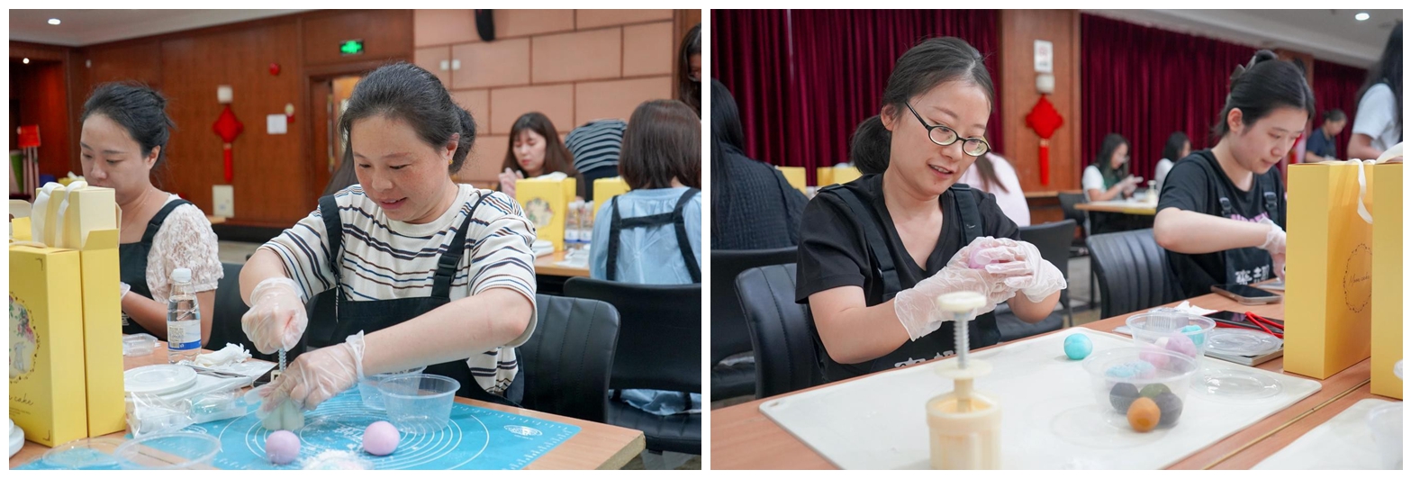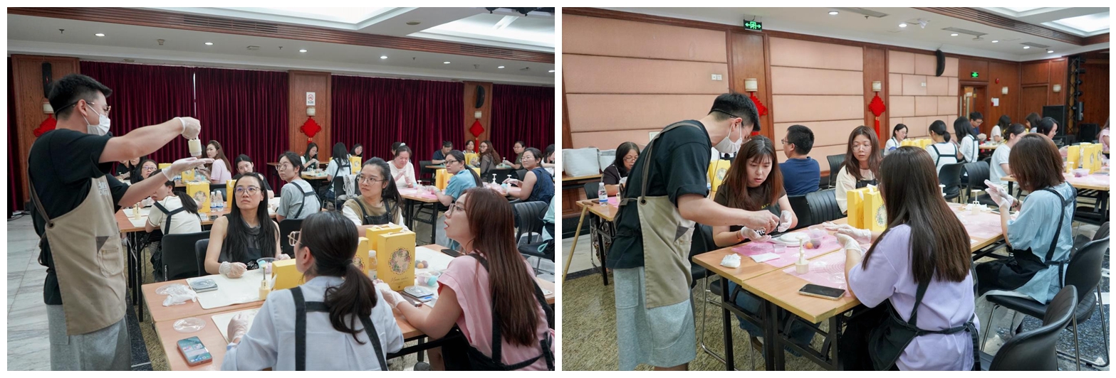 活動(dòng)現(xiàn)場,清甜的餡料香與歡聲笑語交織縈繞員工們紛紛動(dòng)手體驗(yàn)冰皮月餅的制作過程。從揉皮、包餡到壓模成型,大家專注投入,巧手為媒,共織一場穿越古今的中秋綺夢。